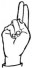 На ћирилици написано ИРИНА ПАВКОВ састоји се из 11 слова [?]. Исписано ћириличном једноручном азбуком за глувонеме: